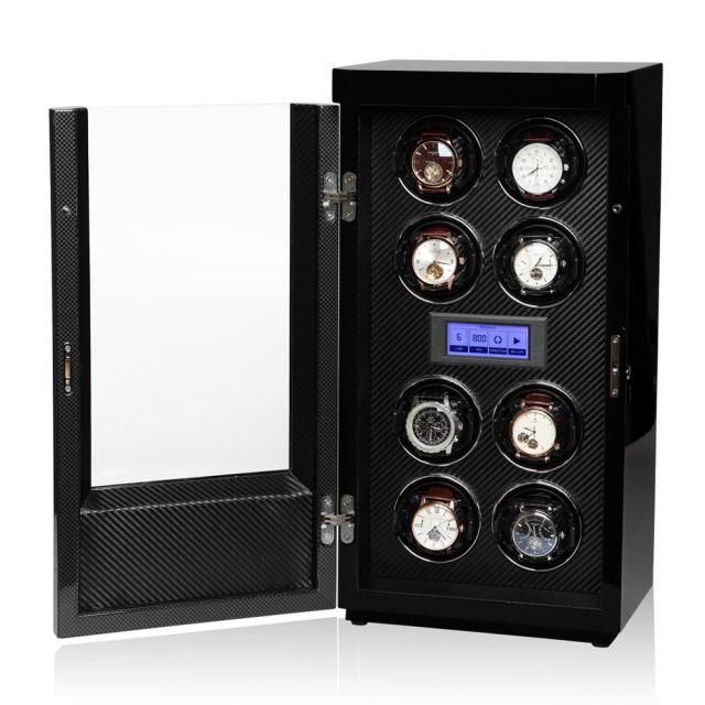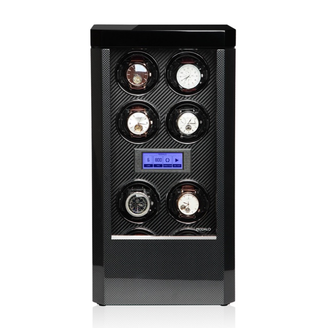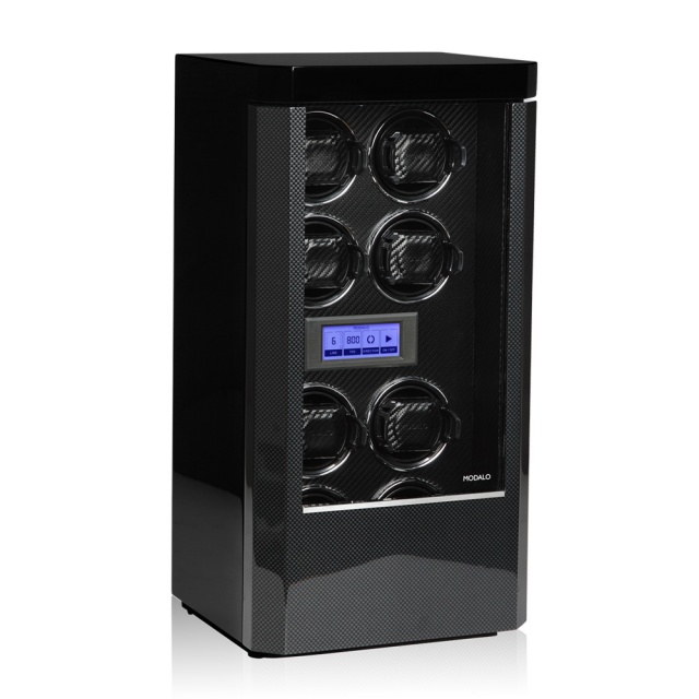 Modalo Royal är en exklusiv watchwinder för åtta klockor. Uppdragarens rotation håller dina klockor med automatiskt urverk uppdragna och ser till så att de alltid är redo att användas. Lådan är tillverkad i massivt trä med 10 lager högblank pianolack. Den drivs av medföljande nätadapter eller batterier.