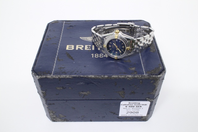 Det medföljer ett nyligen utfärdat äkthetsintyg. Klockan levereras i en Breitling-box i sämre skick. Original garantibevis finns ej.