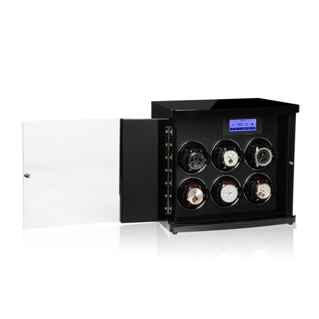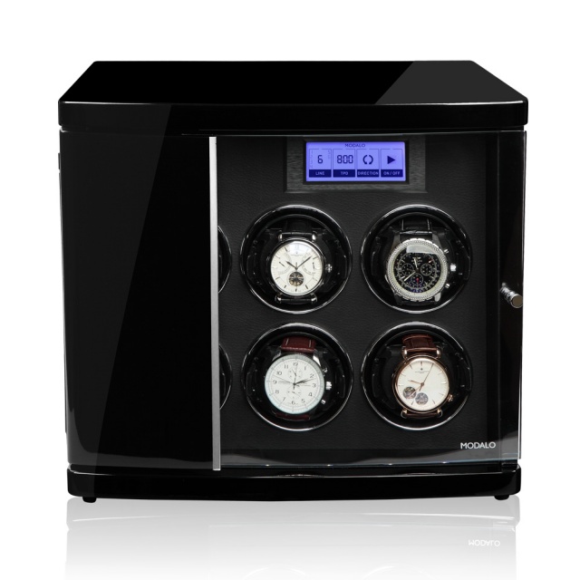 Modalo Timeless 60 är en exklusiv watchwinder för sex klockor. Uppdragarens rotation håller dina klockor med automatiskt urverk uppdragna och ser till så att de alltid är redo att användas. Lådan är tillverkad i massivt trä med 10 lager högblank pianolack. Den drivs av medföljande nätadapter eller batterier.