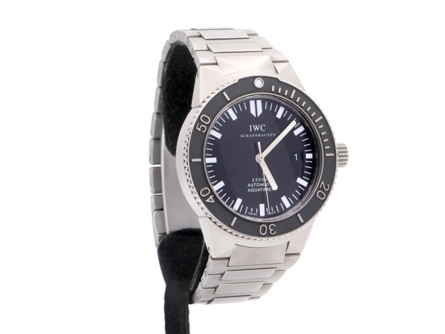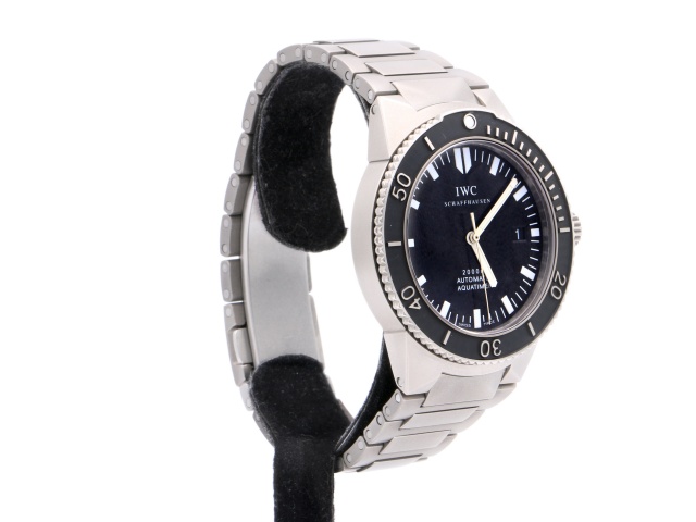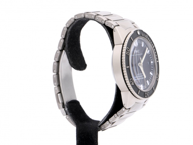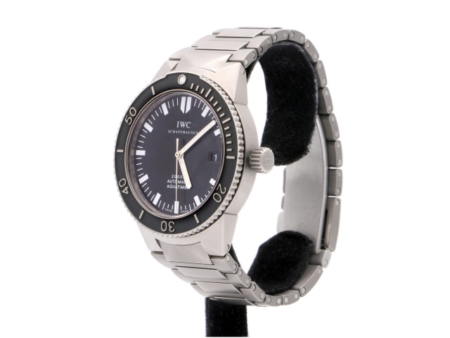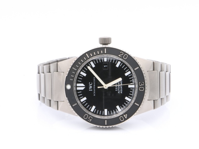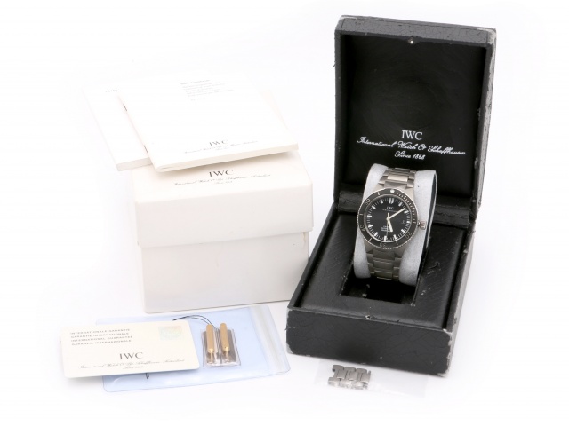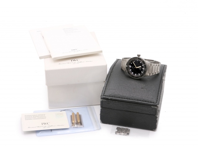 Ett sportigt och riktigt snyggt dykarur från IWC Schaffhausen. En av IWC's eftertraktade och svårfångade klassiker. Här erbjuds titaniummodellen i riktigt gott skick, komplett med originalboxar (sämre skick), certifikat, manualer, verktyg samt extra länkbitar.