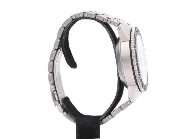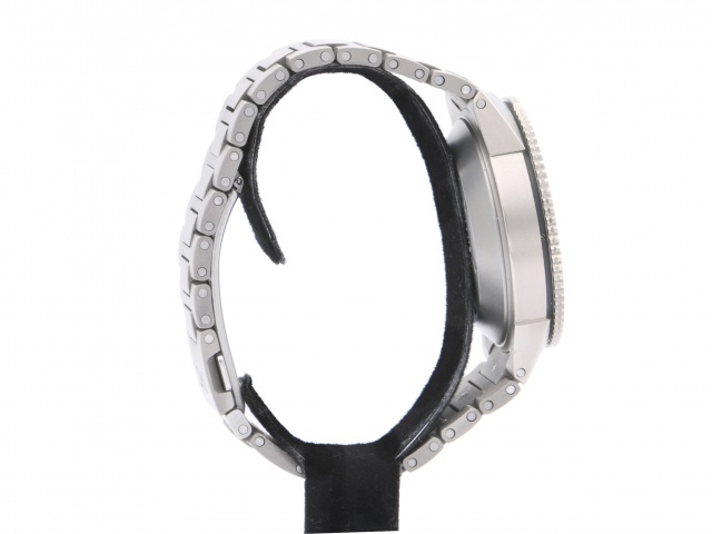 Klockan har svart urtavla med självlysande index och visare. Boetten, som mäter 42 mm i diameter, och länken är helt i matt (blästrat) titan. Vridring med låsfunktion, man måste trycka ringen nedåt för att kunna rotera den.
