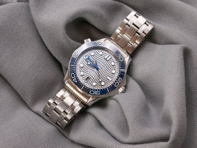 Senaste modellen av Omegas klassiska dykarur. Modellen har blå keramisk bezelring med dykarskala, och grå urtavla: "The dial is sun-brushed PVD chrome colour ceramic and features laser-engraved waves and a date window at 6 o’clock. The skeleton hands and raised indexes are blued and are filled with white Super-LumiNova".