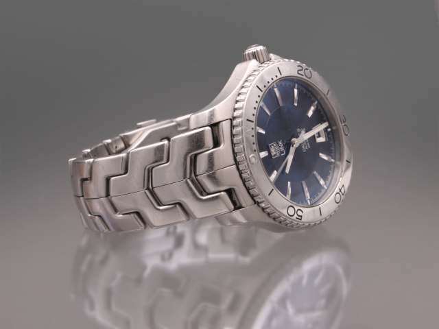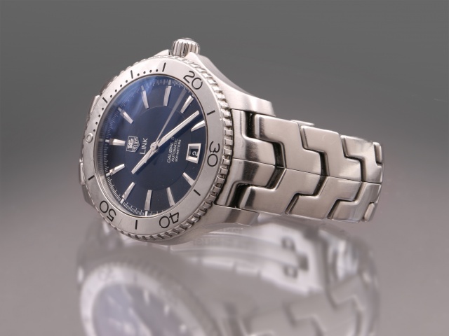 Beskrivning: Klassik Tag Heuer, 42mm boett som är vattentät till 200m, svart urtavla med polerade index och visare, med självlysande markeringar, visare och markering på bezel. Uret kommer på den klassiska Link-länken i borstat stål.