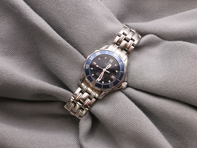 Ett klassiskt Omega dykarur, 28mm dammodell. Blå urtavla med vågmönster.
