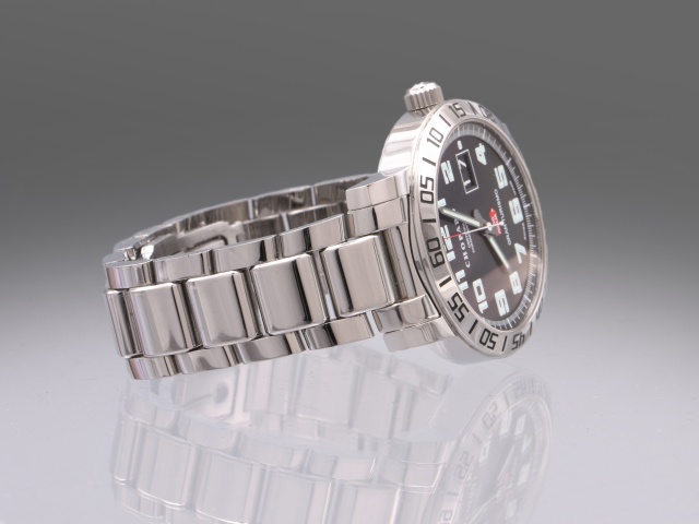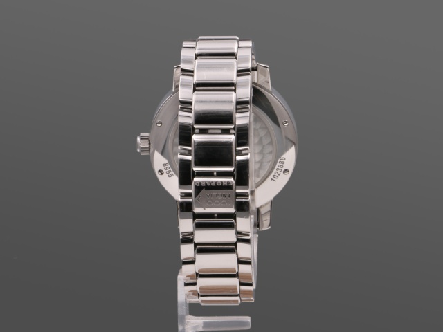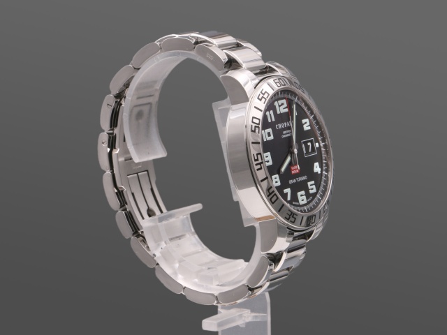 Klockan är ursprungligen köpt i Danmark 2008 och levereras komplett med boxar, certifikat och extra länkbitar. Den är i mycket fint skick med ytterst få ytliga märken, en ytlig repa på sidan av ena bandhornet. Gångkontrollerad med godkänt resultat.