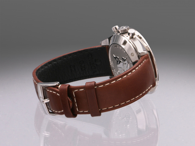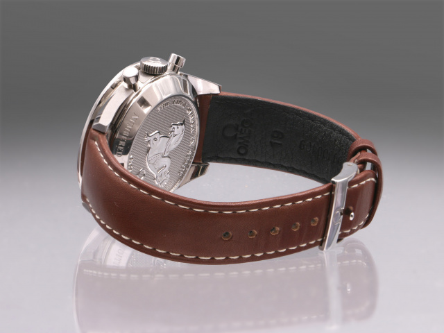 Denna modellen har safirglas, numrerad bakboett av stål med Speedmaster-emblem, samt handdraget urverk kaliber 1861.