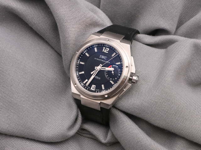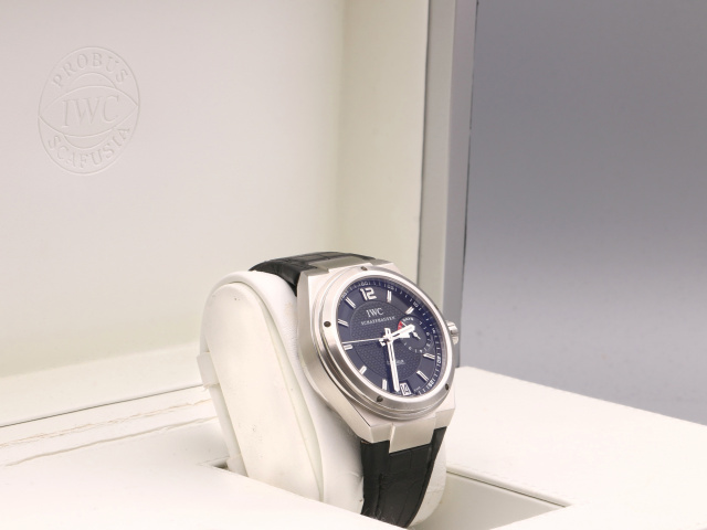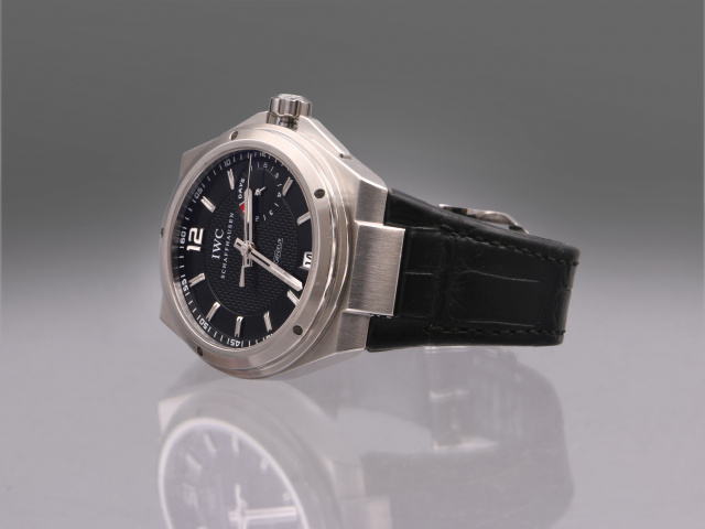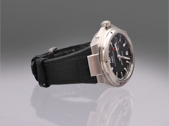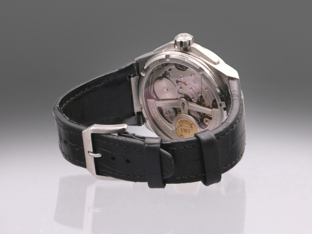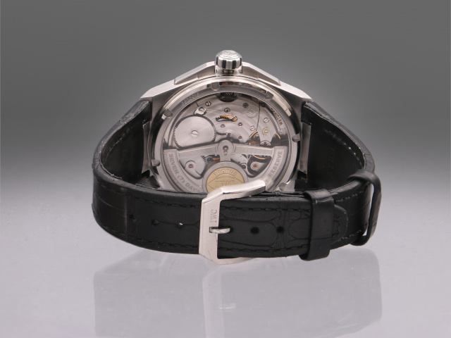 Klockan har integrerat läderband i svart krokodilskinn, bygellås i borstat stål med polerad fasning. Eftersom klockan är sparsamt använd är även läderbandet i mycket gott skick, men med en minimal spricka på baksidan precis vid sista hålet. En fantastisk herrklocka med inhouse-verk från välrenommerade Schweiziska lyxmärket IWC Schaffhausen, i perfekt skick - nära nyskick!