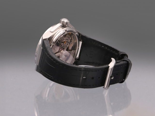 Boetten är 45,5 mm i diameter, i borstat stål med blankpolerade detaljer (så som sidan av glasringen, fasning på boett och kronskydd etc). Svart urtavla med vackert guilloche mönster i centrum, självlysande index och visare, centrumvisare för sekunder, minuter och timmar, datum vid kl 6, samt gångreservindikator i register vid kl 3 - uret har hela 7 dagars gångreser. Baksidan har ett stort safirglas vilket gör att man kan se urverket.
